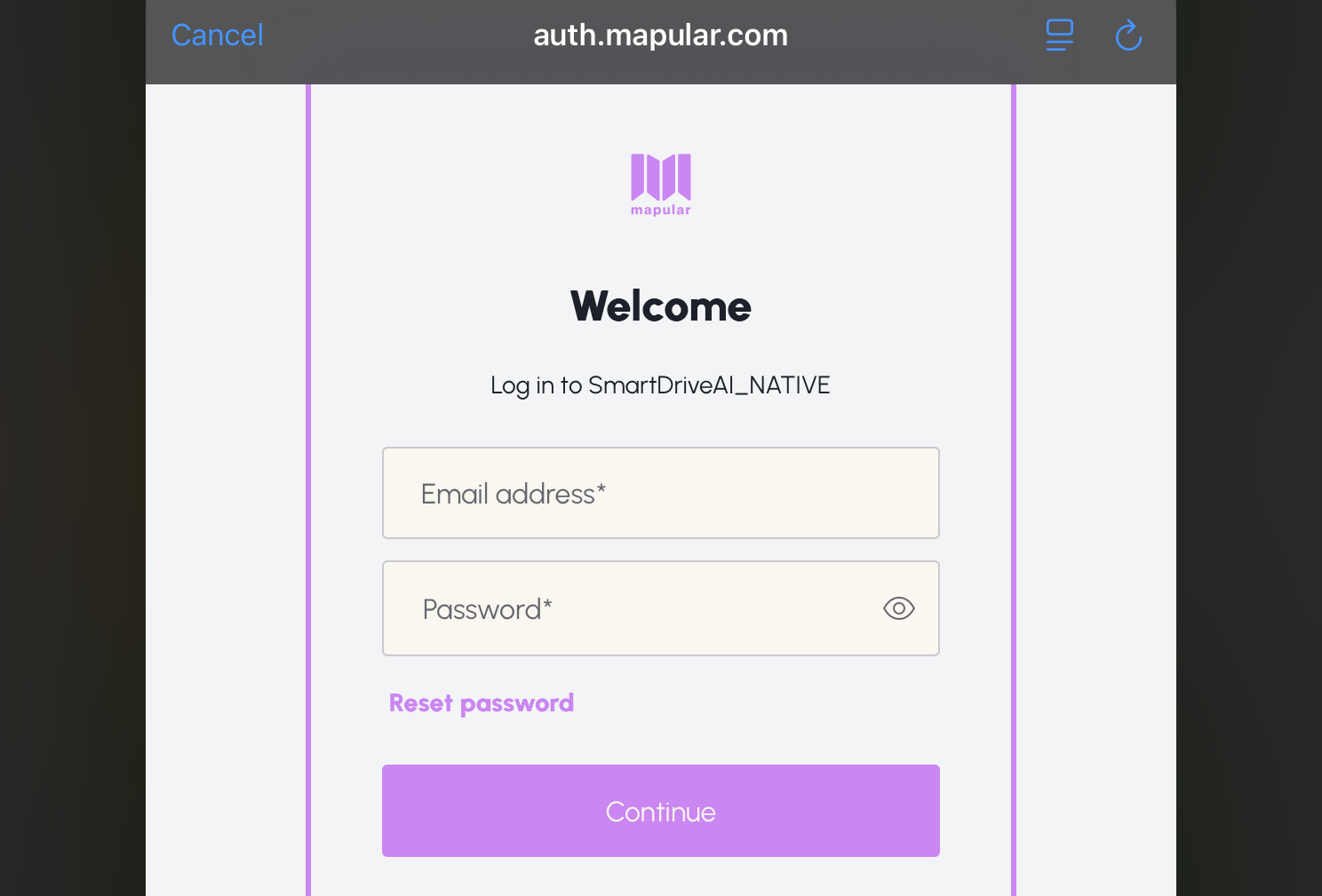 - Open the SmartDrive AI app on your iPad. You will see the login screen with the SmartDrive AI logo.