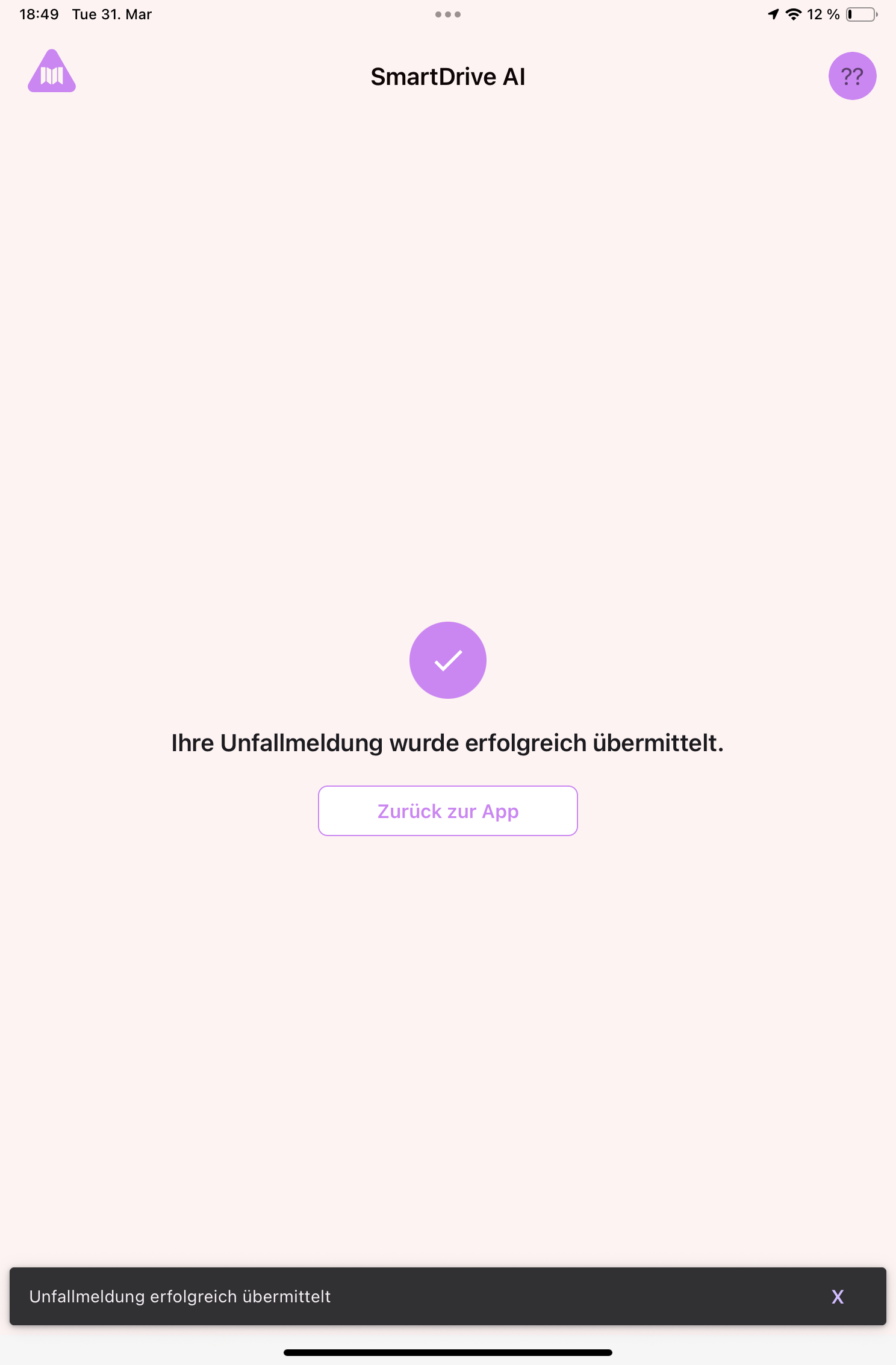- You'll see a confirmation screen with a green checkmark and the message: "Your accident report has been successfully submitted."